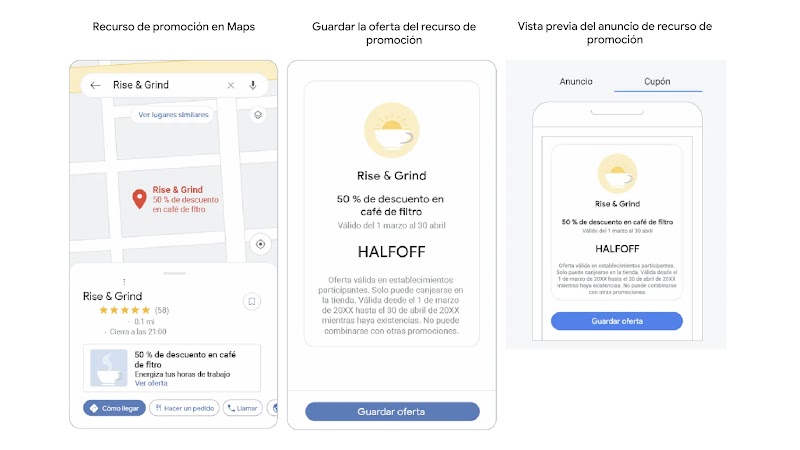 Puedes usar promociones locales a través de los recursos de promoción para destacar tus descuentos y ofertas, y motivar a los clientes a visitar tu tienda física. Mientras están en Maps, los usuarios pueden ver, guardar y compartir una promoción local con amigos y familiares para canjearla en la tienda y en línea.