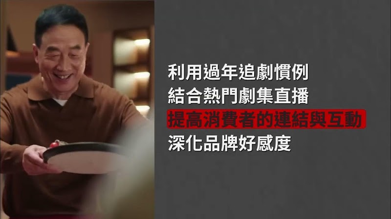可口可樂運用運用過年熱門頻道(Line-up)和串場廣告(Bumper Ad)有效觸及目標受眾和擴大知名度、 TrueView 串流內廣告(TrueView In-Stream Ads)傳遞完整故事,與品牌訊息、YouTube 直播整合,插入跳卡廣告與互動式聊天室,創造邊追劇邊使用品牌的文化共感。在成效上不僅完整觀看率達 57%,品牌春節線上活動參與度相較過往提升 16%,在串場廣告與首選 / 精選頻道包 (YouTube Select Lineups)更獲得 756 萬次曝光。內容策略與多元的 YouTube 廣告工具,成功創造出更具影響力的行銷效果。