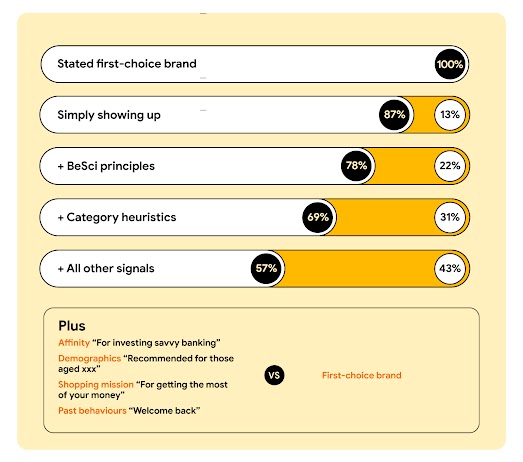 But how does this change with the rise of AI-powered marketing and privacy-preserving technologies? In our latest wave of Messy Middle research, we investigated how collecting and using consented data could help customers and brands alike. We found that layering first-party data on top of behavioural biases could lead up to 43% of people to switch their brand preference from their stated first-choice brand to an invented brand better suited to their individual needs.1