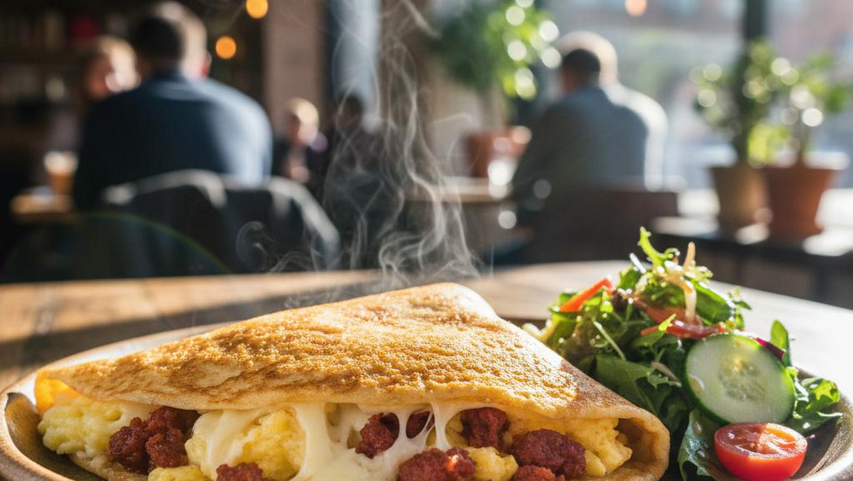 Savory, steaming, and definitively CWE. 🍳 Mozzarella, eggs, and crispy chorizo in every bite.